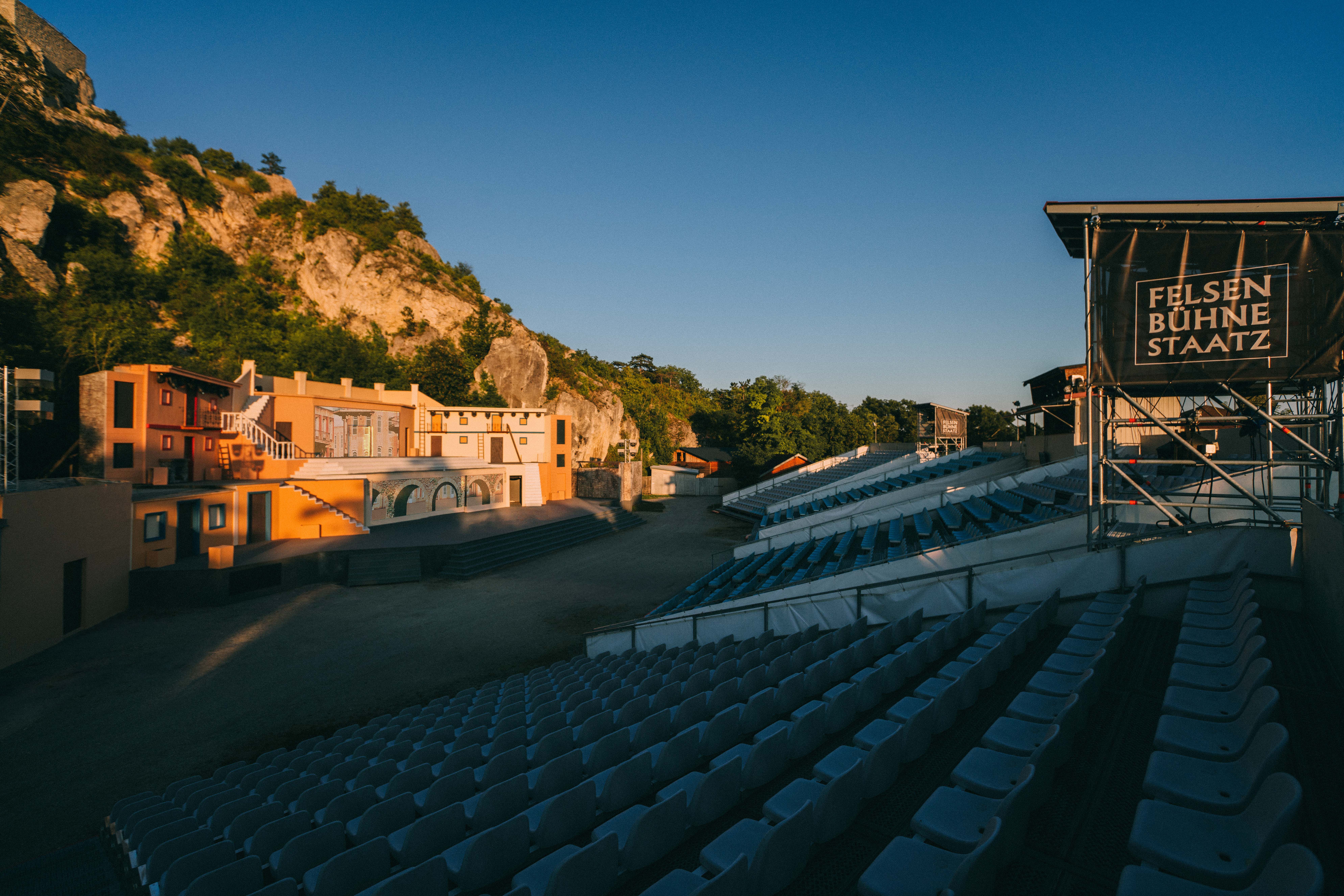 Erwartungsvoll liegt die Stille über der Felsenbühne Staatz, während die Sonne schon lange hinter der steilen Bergwand versunken ist. Die Sommerluft ist aufgeladen mit flirrender Spannung, ein Gänsehautmoment – bis schließlich Musik, Gesang und Licht den Abend erfüllen. Am Fuße der fast tausendjährigen Burgruine Staatz gelegen, zählt die Open-Air-Spielstätte mit 1.200 Sitzplätzen zu den größten ihrer Art in Österreich. Wo einst Karl Mays Winnetou-Abenteuer das Publikum fesselten, entführen heute Musicals wie „Evita“, „Les Misérables“ oder „Jesus Christ Superstar“ in Welten voller Leidenschaft und Emotion.
