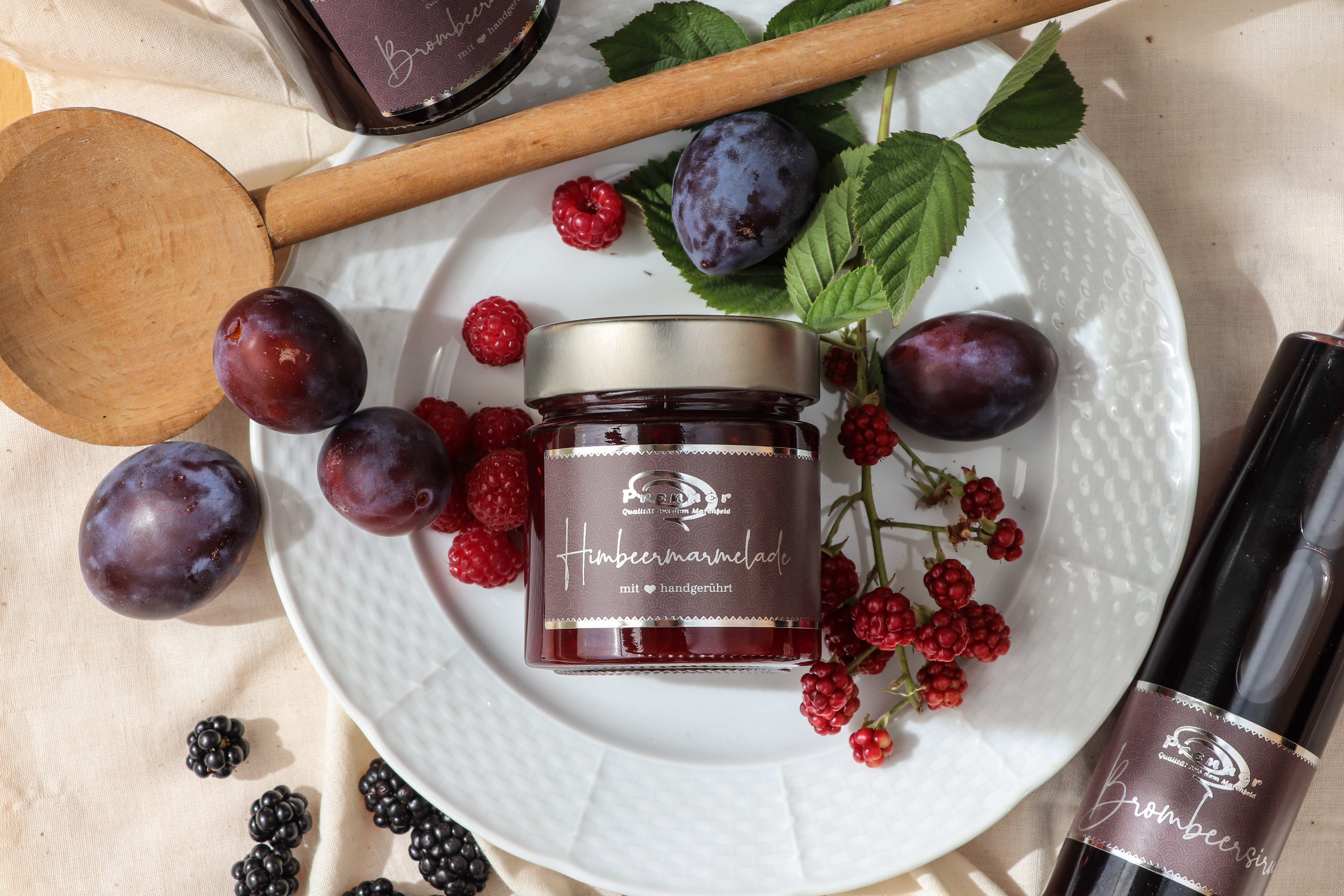 Aus den vollreifen Früchten entstehen in traditioneller Handarbeit zahlreiche Köstlichkeiten – Glas für Glas, Flasche für Flasche reine Natur. So findet man unter anderem handgemachte Marmeladenkreationen, Sirup, Fruchtessig, Dessertwein, Likör und Edelbrand. Besondere Highlights sind Prenners spritzig leichter Himbeercider und unsere feinen Likörbeeren – in Likör eingelegte Himbeeren.