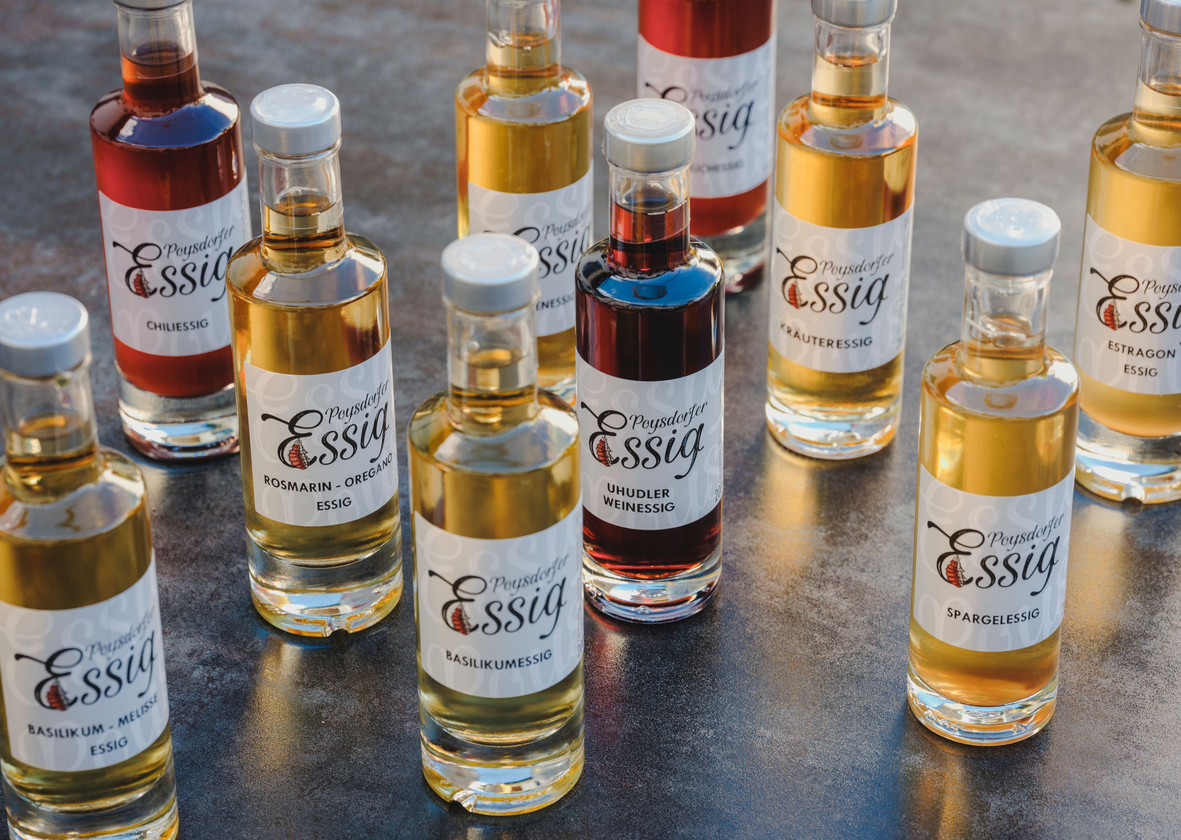Das Weingut Heger-Schuckert in Poysdorf ist ein Familienbetrieb, der seit dem 18. Jahrhundert sowohl weiße als auch rote Trauben kultiviert. Durch eine harmonische Partnerschaft mit der Natur und modern gelebten Traditionen entstehen hier fruchtig-elegante Weine mit einem harmonischen Körper. Eine Weinverkostung auf dem Weingut M. Heger bietet die Möglichkeit, das vielfältige Sortiment kennenzulernen. Optional kann dies mit einer kleinen Jause und einer Führung durch die Weingärten und den Weinkeller kombiniert werden. Simone Schuckert, eine leidenschaftliche Verarbeiterin von Nahrungsmitteln, hat sich dem Thema 'Essig' verschrieben. Als Weinbäuerin war es für sie naheliegend, eigenen Qualitätswein der Essiggärung zuzuführen. Ihr Poysdorfer Essig ist ein Genuss- und Würzmittel, das durch seine Qualität und liebevolle Herstellung jeden Gaumen erfreut. Die hochwertigen und naturnah produzierten Grundzutaten für die Erzeugnisse stammen aus eigenem Anbau oder von Bauern aus der Umgebung.