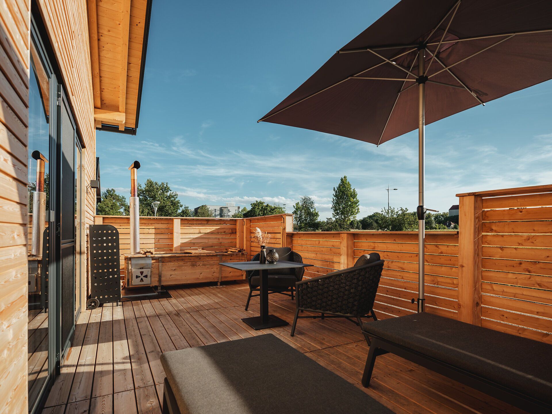 Laa ist bekannt für seine Therme, aber auch für die schönen Radwege – und natürlich für den Wein. Eine Region, in der man gut und gerne ein paar Tage und Nächte verbringen kann. Besonders behaglich wohnt es sich in einem der drei chaLAAlets „Edith“, „Pepperl“ und „Heri“ – jedes mit Kaminofen, eigener Innensauna, Terrasse und einer Feuerwasser-Outdoor-Badewanne, sprich: einem ganz privaten Luxus-Spa. Wer eine schöne Zeit zu zweit haben will, muss das Haus also nicht einmal verlassen.