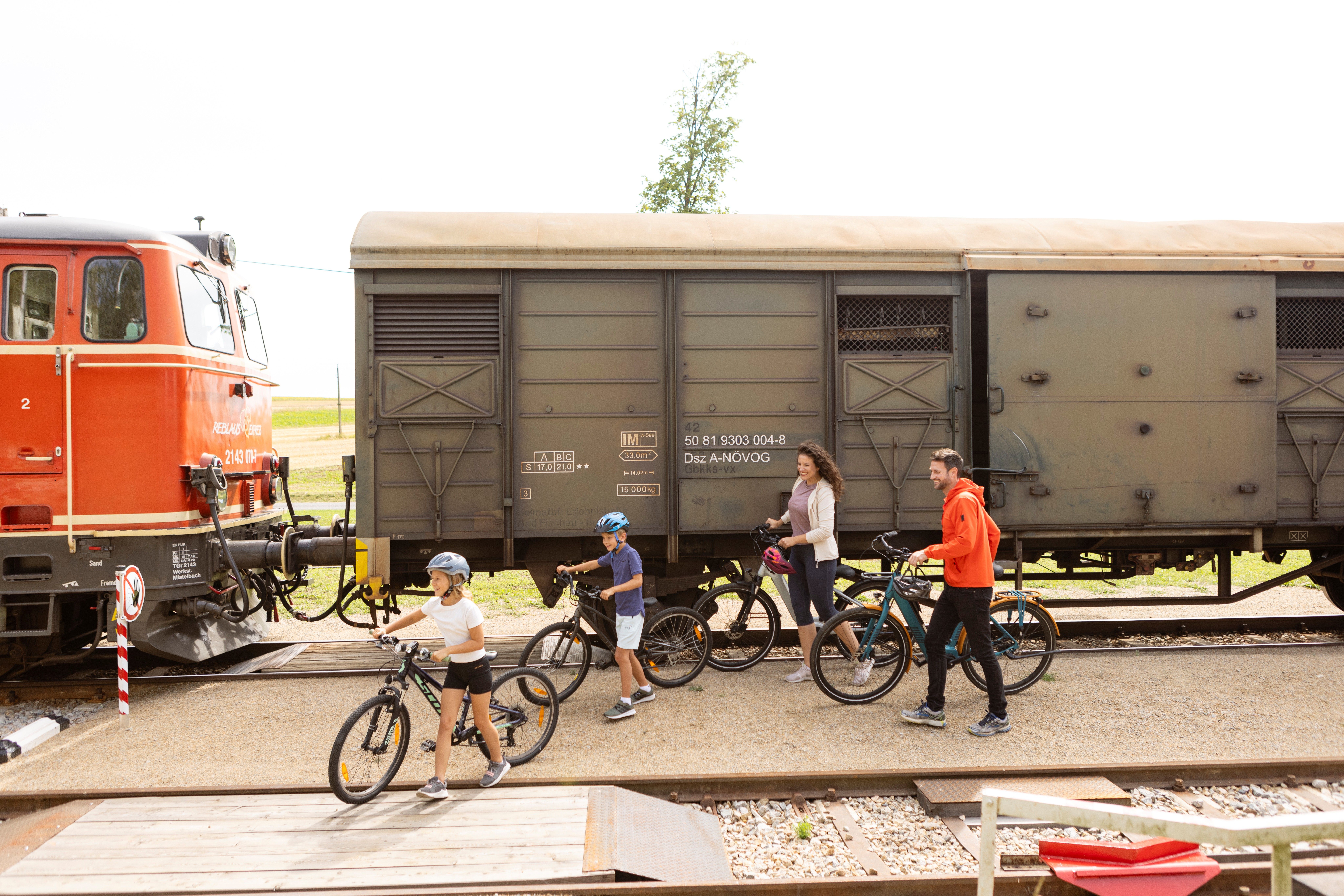 Eine idyllische Radtour entlang der Gleise des nostalgischen Reblaus Express: Durch kleine Dörfer, üppige Weinberge und weite Felder verläuft der Weg in die Weinstadt Retz.