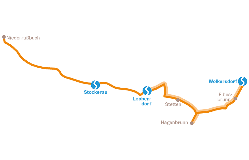 Wolkersdorf - Eibesbrunn - Hagenbrunn - Stetten - Leobendorf - Stockerau - Niederrußbach